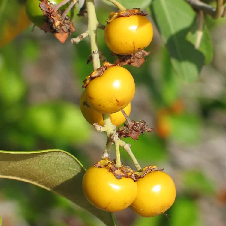 Taste: The fruit pulp of some trees is sweet, juicy, and pleasant-tasting and in others it is acidulous, and without any sweetness.[6] A purplish layer of soft pulp surrounds the seeds. Fruits ripen slowly, but once ripe their shelf life is longer than that of the tamarillo.