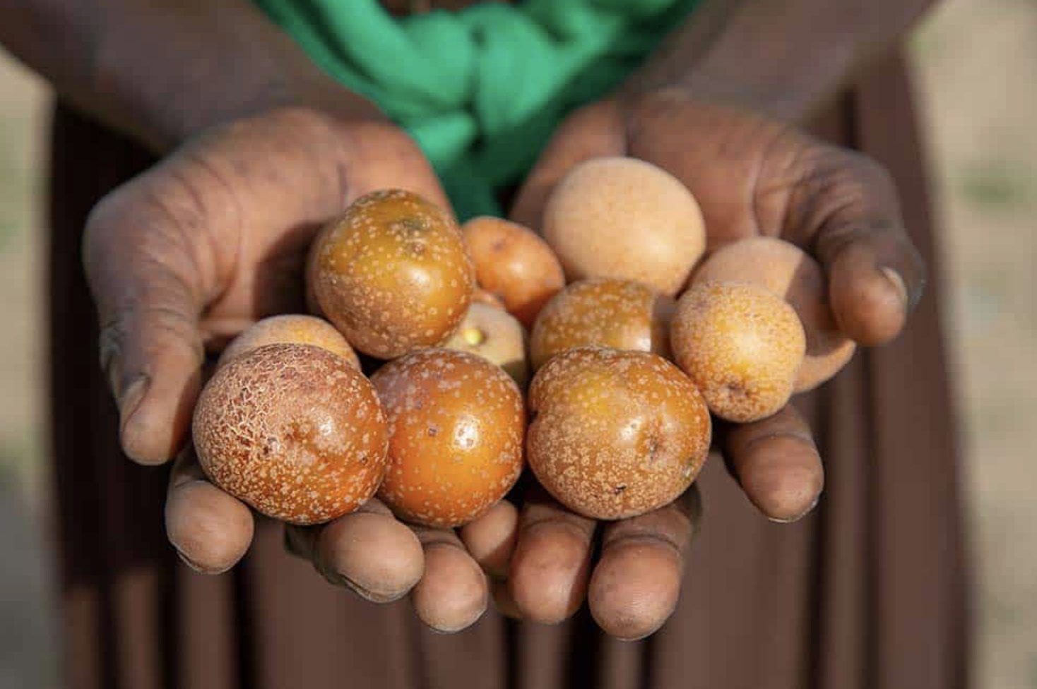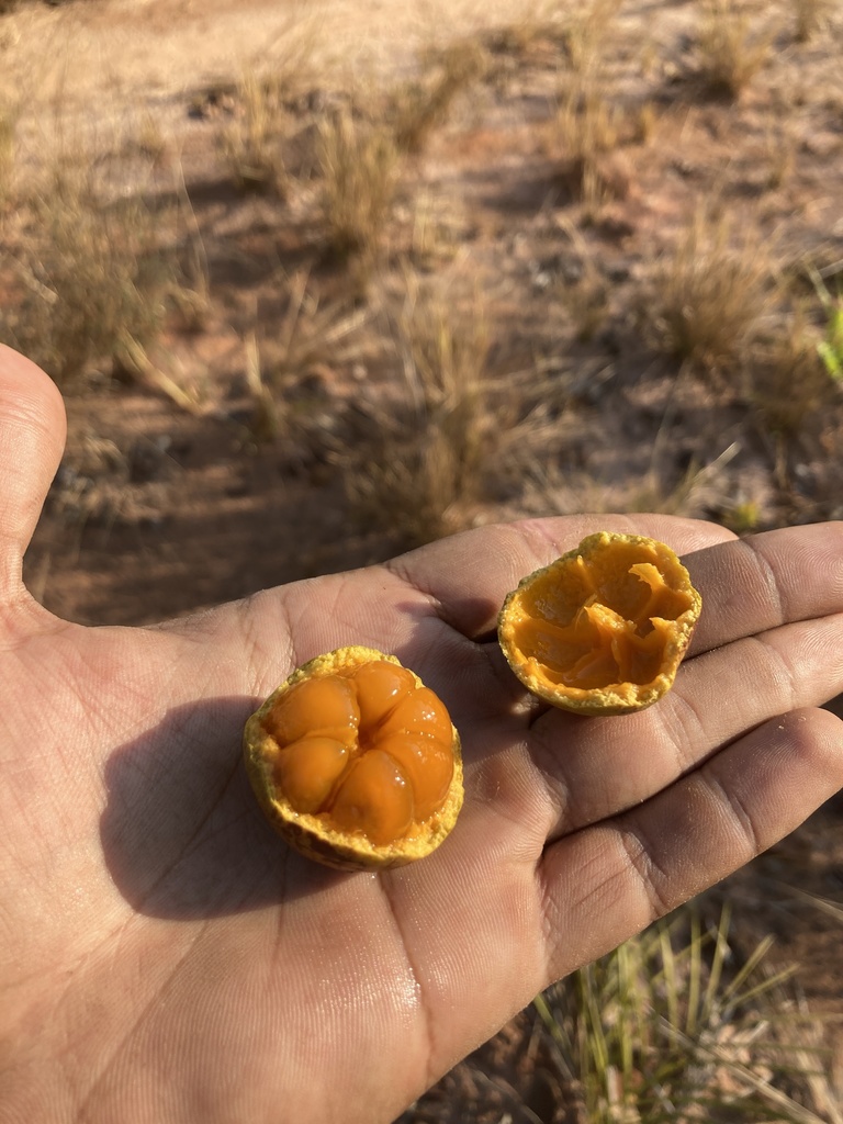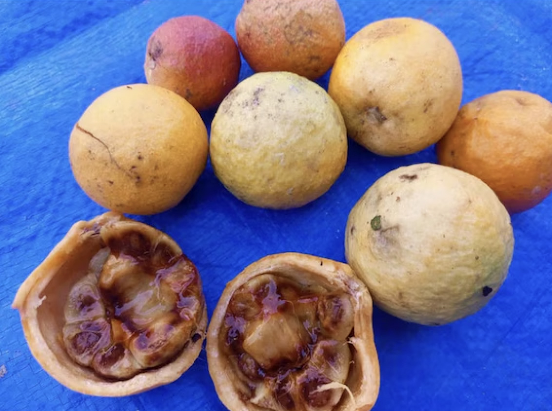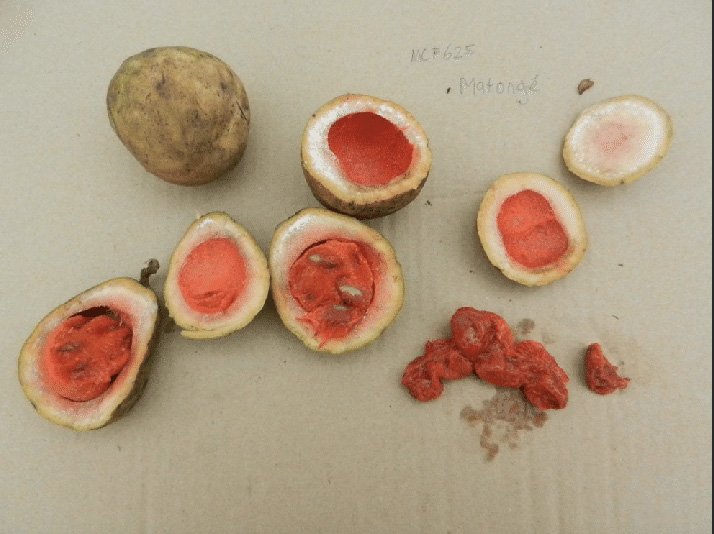 Taste: A sweet and gelatinous pulp with a grape-like flavour. The large, starchy seeds are roasted and used as a substitute for cassava.