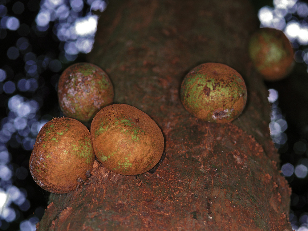 Description: Bears large, round fruits directly on its trunk (cauliflory), serving as a seasonal calendar.